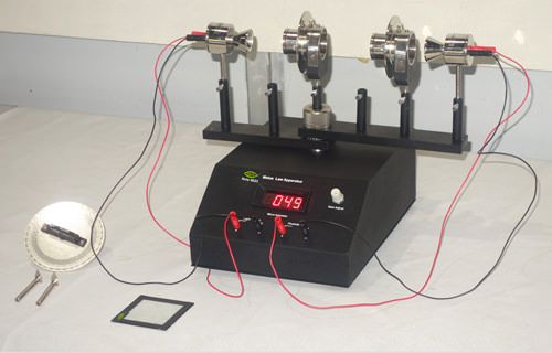 Nvis 6023 Malus Law Apparatus dedicated to elucidate students to understand the wave nature of light. LED is used as a source of unpolarized light. With the help of this apparatus the basic law of polarization, Brewster’s law, and Malus law experiment can be verified. Polarization can be studied by direct vision as well as by reading the variation of intensity through a digital ammeter connected across a photodetector. The verification of Malus law experiment can be done in two different ways using two coaxial polarized and a combination of a glass plate and Polaroid. All the above experiments can also be performed using an unpolarized laser as the source of light.