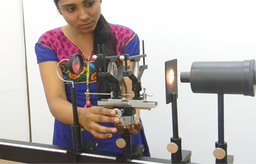 The Nodal slide assembly is provided with angular and linear movement along with graduated linear and circular scale. This setup also helps the students to understand the basic property of lens like focal point, nodal Point, principal axis, centre of curvature etc.