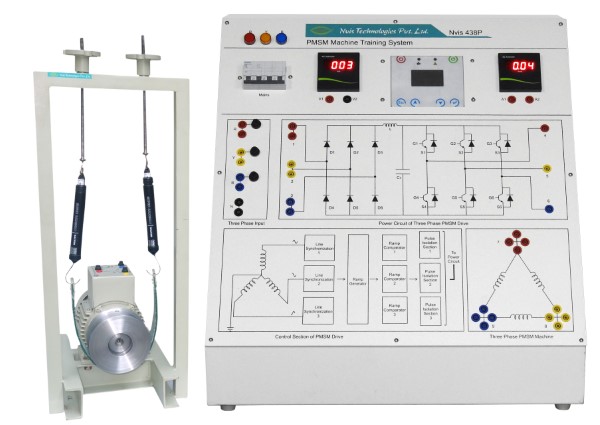 Nvis 438P provides a comprehensive learning experience for working of PMSM motor through experiments such as running and reversing, torque-speed characteristics, load characteristics, speed controlling using VVVF technique, etc.
