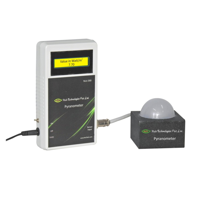 Nvis 590 Pyranometer is a device that measures solar irradiance from a hemispherical field of view incident on a flat surface. The SI units of irradiance is watt per square meter (W/m2). Traditionally pyranometers were mainly used for climatological research and weather monitoring purposes. However recent worldwide interest in solar energy has also lead to an increased interest in pyranometers.