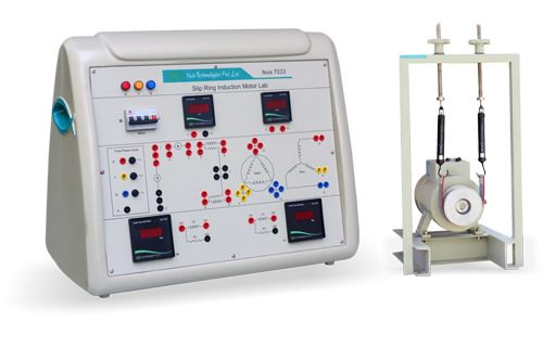 Nvis 7033 Slip Ring Induction Motor Lab is an adaptable training system for the electrical laboratories. The product helps to understand the basic concepts and functioning of a Slip Ring Induction Motor. This system gives practical knowledge about the running and reversing of Induction Motor, study of no load test, block rotor test and load test etc.